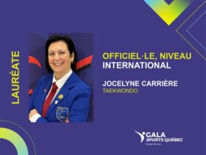 Jocelyne Carrière a été la seule officielle du Canada nommée par la Fédération internationale de taekwondo pour participer aux Championnats du monde.
